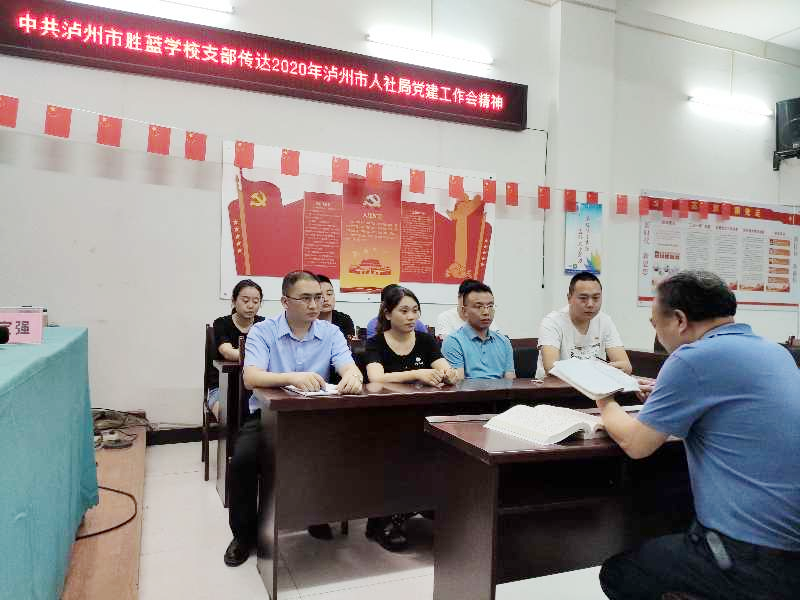 中共瀘州市勝藍職業(yè)學(xué)校黨支部黨員大會于2020年6月5日下午在瀘州市勝藍職業(yè)學(xué)校召開。會議主要傳達學(xué)習(xí)6月5日上午瀘州市人力資源和社會保障局召開的2020年瀘州市職業(yè)培訓(xùn)學(xué)校黨組織黨建工作會議精神。